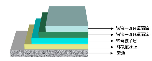 ②環氧底漆層:用鏝刀或滾筒于表面均勻的批刮或滾涂環氧底漆一遍